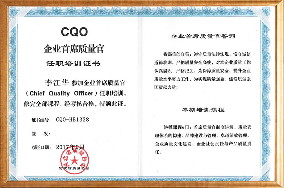 河北優(yōu)質(zhì)產(chǎn)品證書