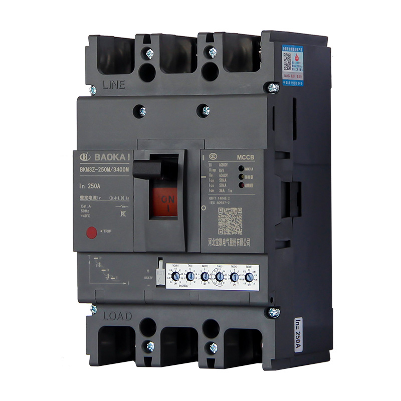 BKM3Z系列智能型塑料外殼式斷路器適用于交流50Hz,額定絕緣電壓為800V,額定工作電壓至 400V,額定電流至 800A的電路中作不頻繁轉(zhuǎn)換及電動(dòng)機(jī)不頻繁起動(dòng)之用。具有過(guò)載長(zhǎng)延時(shí)反時(shí)限、短路短延時(shí)反時(shí)限、短路短延時(shí)定時(shí)限、短路瞬時(shí)和欠電壓保護(hù)功能,能保護(hù)線路和電源設(shè)備不受損壞。本系列斷路器具有隔離功能。本系列斷路器可垂直安裝 ( 即豎裝 ),亦可水平安裝 ( 即橫裝 )。本系列斷路器執(zhí)行標(biāo)準(zhǔn):IEC 60947-1及GB/T 14048.1 《低壓開(kāi)關(guān)設(shè)備和控制設(shè)備 第1部分:總則》IEC 60947-2及GB/T 14048.2 《低壓開(kāi)關(guān)設(shè)備和控制設(shè)備 第2部分:斷路器》IEC 60947-4及GB/T 14048.4 《低壓開(kāi)關(guān)設(shè)備和控制設(shè)備 第4-1部分:接觸器和電動(dòng)機(jī)起動(dòng)器 機(jī)電式接觸器和電動(dòng)機(jī)起動(dòng)器(含電動(dòng)機(jī)保護(hù)器)》IEC 60947-5及GB/T 14048.5 《低壓開(kāi)關(guān)設(shè)備和控制設(shè)備 第5-1部分:控制電路電器和開(kāi)關(guān)元件 機(jī)電式控制電路電器》