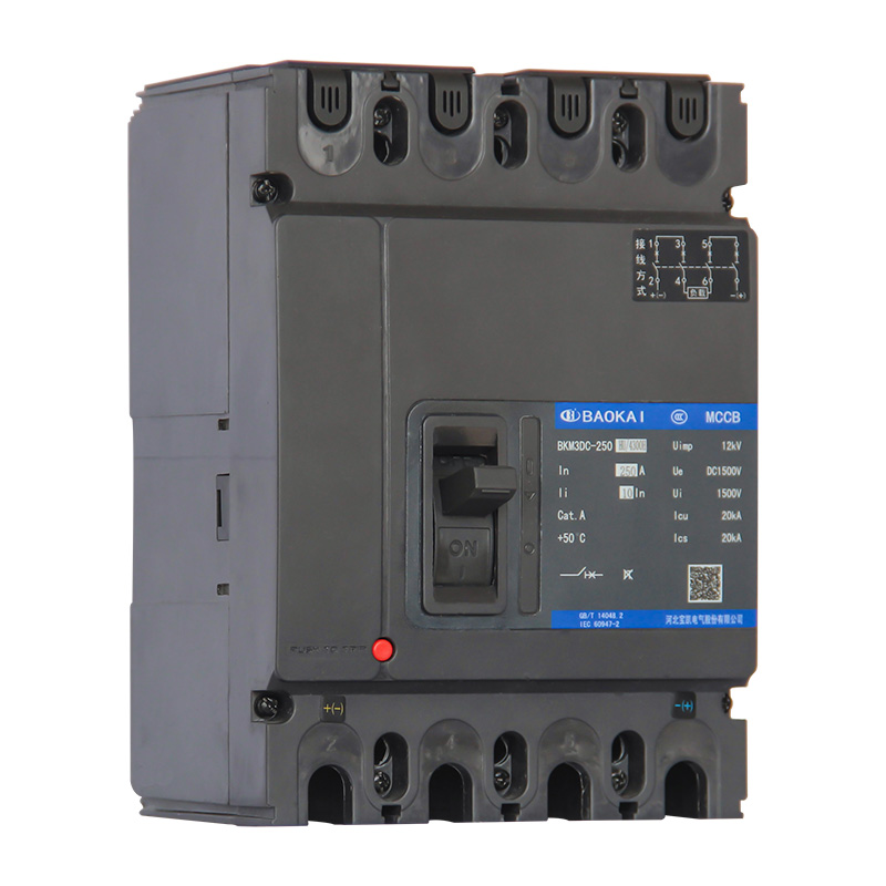 BKM3DC-HU系列直流塑料外殼式斷路器適用于直流系統(tǒng)應用環(huán)境,額定絕緣電壓DC1500V,額定工作電壓至DC1500V,額定電流至500A的配電網(wǎng)絡中。本系列斷路器具有過載、短路保護功能,能保護線路和電源設備不受損壞。產(chǎn)品廣泛用于新能源、電化學儲能、電力發(fā)電、輸變電、通訊、工控、地產(chǎn)、電力電源、軌道交通、工(公)建等行業(yè)中。本系列斷路器具有隔離功能。本系列斷路器執(zhí)行標準:IEC 60947-1及GB/T 14048.1 《低壓開關設備和控制設備 第1部分:總則》IEC 60947-2及GB/T 14048.2 《低壓開關設備和控制設備 第2部分:斷路器》