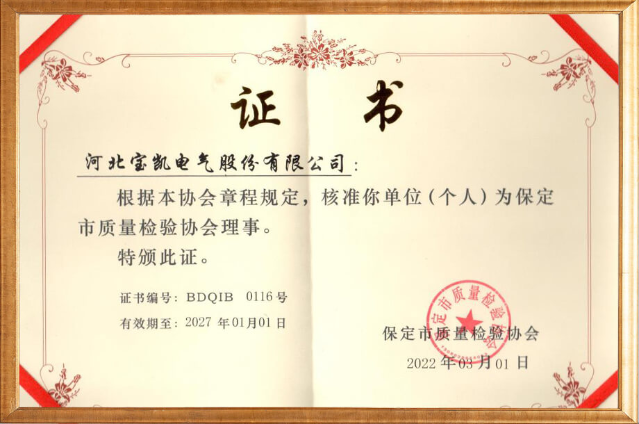 保定市質(zhì)量檢驗協(xié)會理事2022