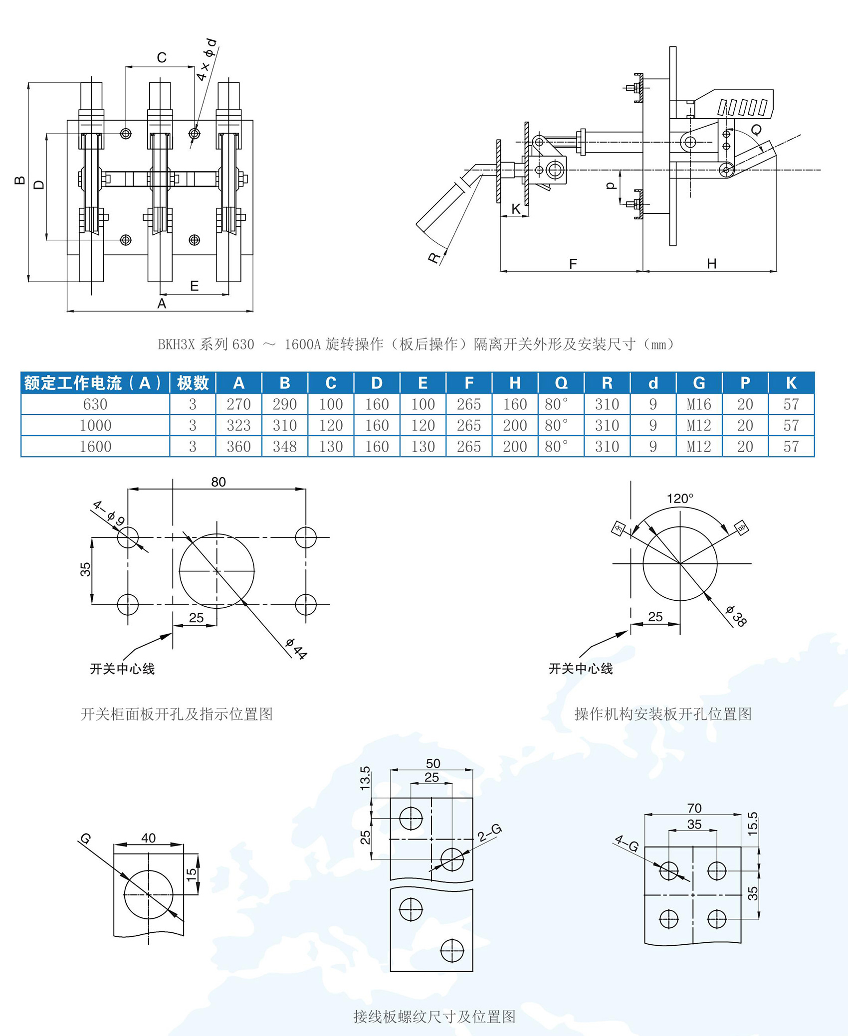 BKH3系列隔離開關(guān)適用于交流50Hz,額定工作電壓380V及以下,額定工作電流100A-1600A的成套配電裝置中,作為不頻繁手動接通和分?jǐn)嚯娏骰蜃鞲綦x器用。BKH3系列隔離開關(guān)符合GB/T 14048.3《低壓開關(guān)設(shè)備和控制設(shè)備低壓開關(guān)、隔離器、隔離開關(guān)及熔斷器組合電器》。