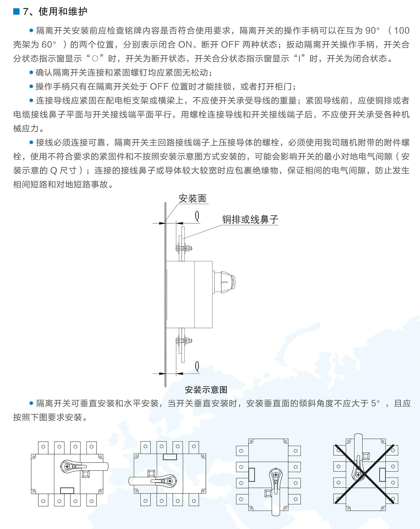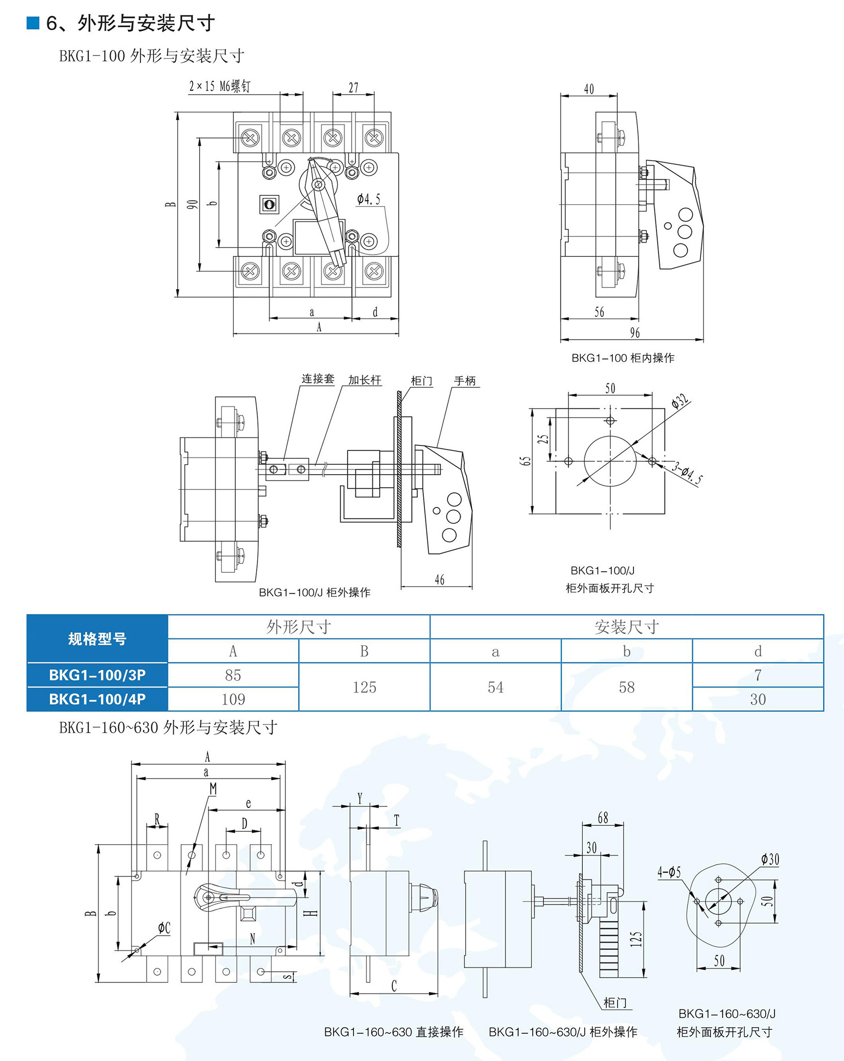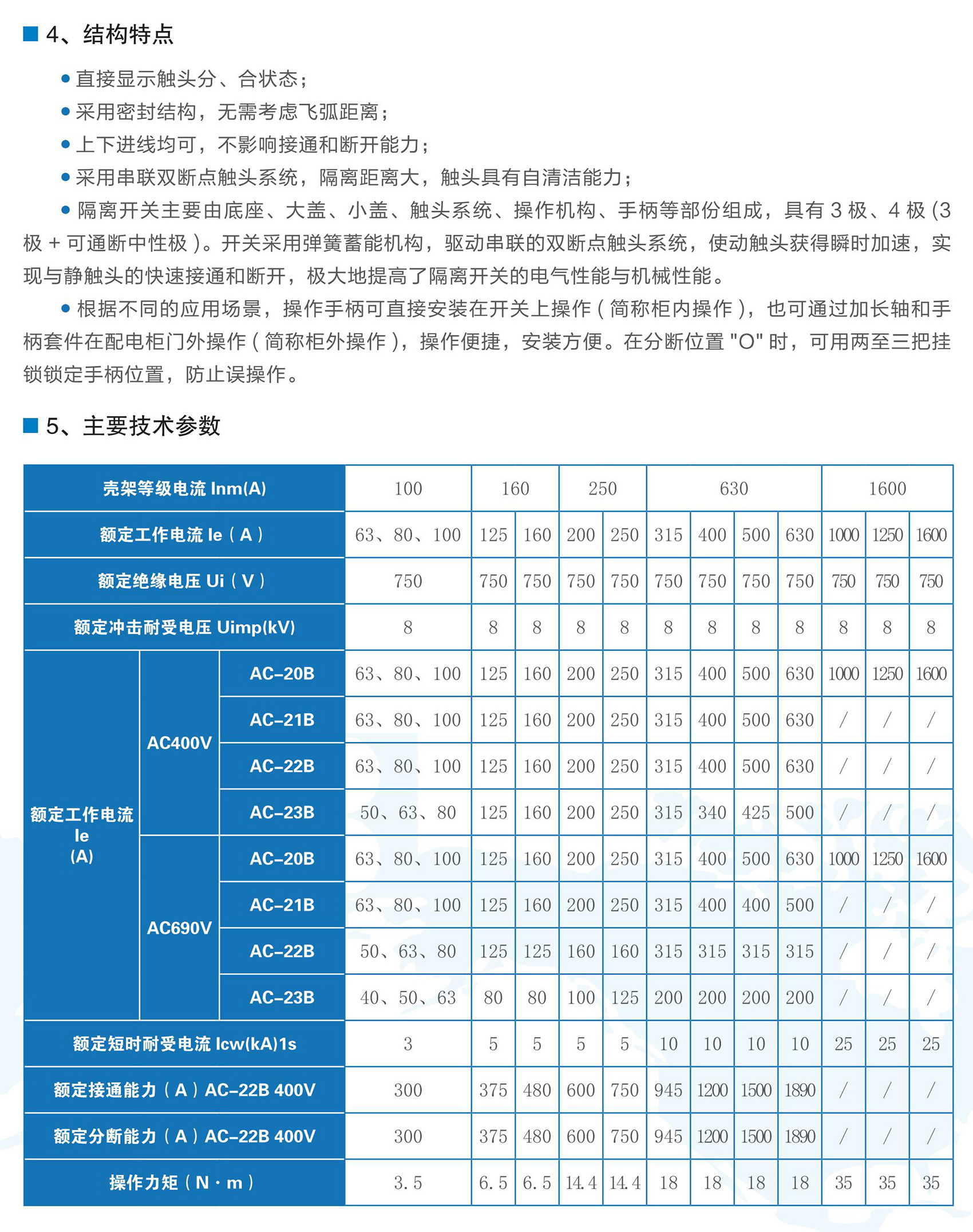 BKG1系列隔離開關(guān)適用于交流50/60Hz,額定工作電壓至AC690V,額定電流為1600A及以下的電力系統(tǒng)中,可廣泛用于電力、建筑、冶金及其它行業(yè)的配電系統(tǒng)和自動化系統(tǒng)中用于不頻繁接通、分?jǐn)嗪透綦x電路之用,額定工作電流1000A及以上產(chǎn)品,只作電氣隔離之用。BKG1系列隔離開關(guān)符合GB/T 14048.3《低壓開關(guān)設(shè)備和控制設(shè)備低壓開關(guān)、隔離器、隔離開關(guān)及熔斷器組合電器》。