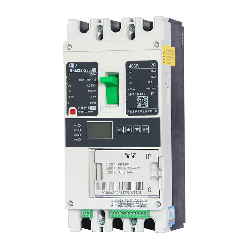 BKM3E系列塑料外殼式斷路器適用于交流50Hz,額定絕緣電壓1000V,額定工作電壓至400V,額定電流至400A的配電網(wǎng)絡(luò)中。本系列斷路器具備過載長延時(shí)、短路短延時(shí)、短路瞬時(shí)、過欠壓及斷相保護(hù)功能,對線路和電源設(shè)備起保護(hù)作用??梢韵蚪K端設(shè)備反饋產(chǎn)品的電流、電壓、功率、電能、壽命等信息,用于對負(fù)載端的檢測和監(jiān)控,降低電網(wǎng)的運(yùn)維成本,也為將來的能效系統(tǒng)提供必要的數(shù)據(jù)。本系列斷路器還具有配電網(wǎng)絡(luò)拓?fù)潢P(guān)系自動(dòng)識別和電力線載波通訊功能。本系列斷路器執(zhí)行標(biāo)準(zhǔn):IEC 60947-1,GB/T 14048.1 《低壓開關(guān)設(shè)備和控制設(shè)備 第1部分:總則》IEC 60947-2,GB/T 14048.2 《低壓開關(guān)設(shè)備和控制設(shè)備 第2部分:斷路器》