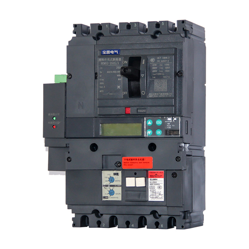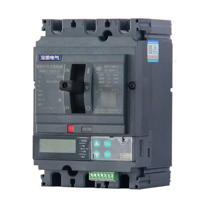 BKM5 系列塑料外殼式斷路器適用于交流50Hz,額定絕緣電壓1000V,額定工作電壓至690V,額定電流12.5A至1600A的配電網(wǎng)絡(luò)中,用來分配電能和保護(hù)線路及電源設(shè)備免受過載、短路、欠電壓等故障的損壞。亦可作為電動機(jī)的不頻繁起動及過載、短路、欠電壓保護(hù)。加裝Vigi剩余電流保護(hù)模塊的斷路器,只能上進(jìn)線。MIC5.0E智能型斷路器只能上進(jìn)線。其他規(guī)格的斷路器,既可上進(jìn)線,也可下進(jìn)線。本系列斷路器具有隔離功能。本系列斷路器可垂直安裝(即豎裝),亦可水平安裝( 即橫裝)。本系列斷路器執(zhí)行標(biāo)準(zhǔn):IEC 60947-1及GB/T 14048.1 《低壓開關(guān)設(shè)備和控制設(shè)備 第1部分:總則》IEC 60947-2及GB/T 14048.2 《低壓開關(guān)設(shè)備和控制設(shè)備 第2部分:斷路器》IEC 60947-4及GB/T 14048.4 《低壓開關(guān)設(shè)備和控制設(shè)備 第4-1部分:接觸器和電動機(jī)起動器 機(jī)電式接觸器和電動機(jī)起動器(含電動機(jī)保護(hù)器)》GB/T 22710《低壓斷路器用電子式控制器》