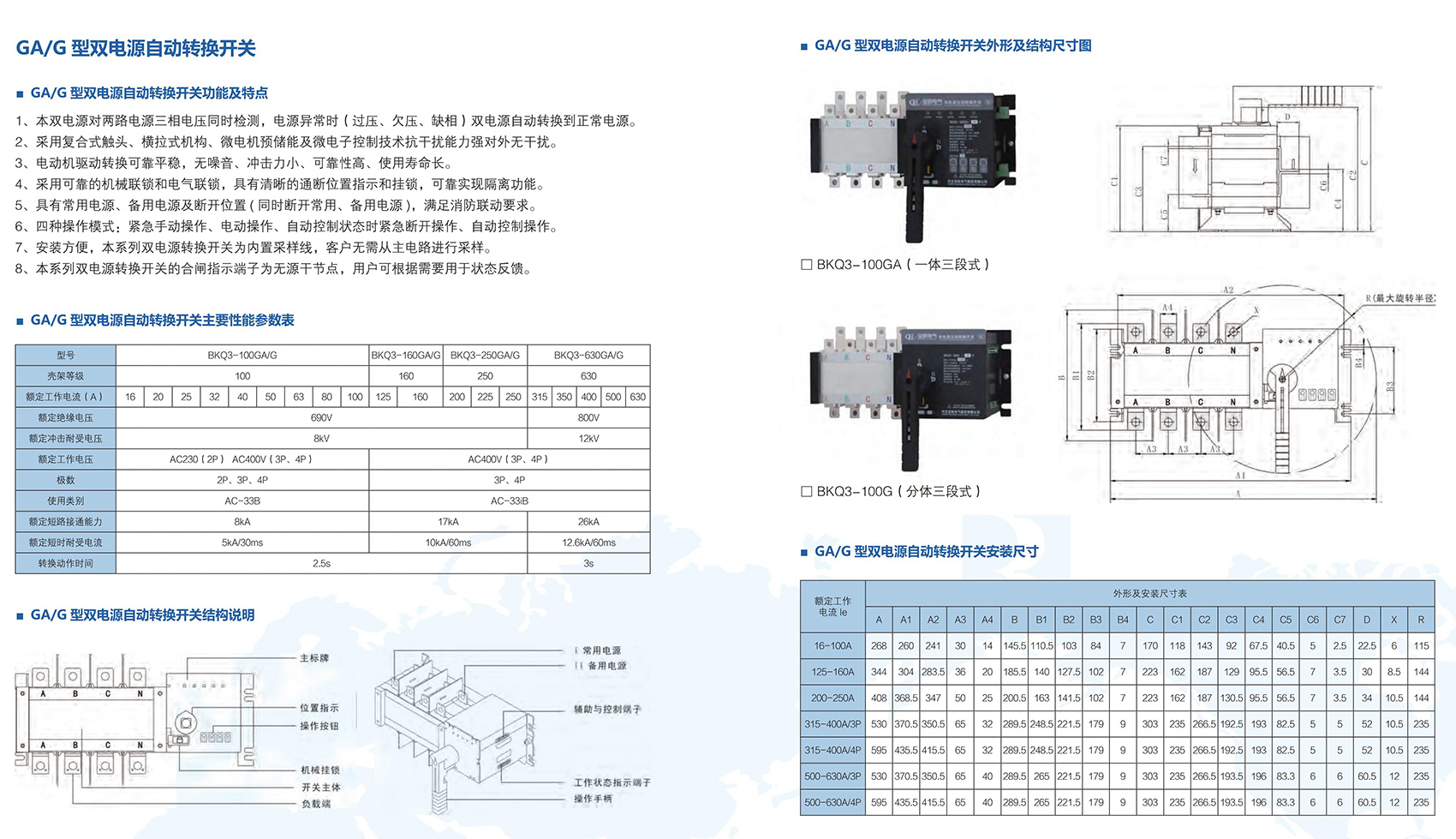 BKQ3-3200Q系列自動轉(zhuǎn)換開關(guān)電器適用于交流50/60Hz,額定工作電壓400V,額定電流800A至3200A的雙路配電系統(tǒng)中,產(chǎn)品由開關(guān)本體與轉(zhuǎn)換控制器兩部分組成,本體采用電磁線圈驅(qū)動,轉(zhuǎn)換速度快;轉(zhuǎn)換控制器具有對兩路三相電源的過電壓、欠電壓、缺相等故障檢測功能;同時帶有發(fā)電機(jī)組啟、停信號輸出。主要應(yīng)用于醫(yī)院、商場、銀行、化工、高層建筑、軍事設(shè)施、消防等不允許斷電的重要場所。產(chǎn)品符合GB/T 14048.11《低壓開關(guān)設(shè)備和控制設(shè)備 第 6-1 部分:多功能電器 轉(zhuǎn)換開關(guān)電器》。